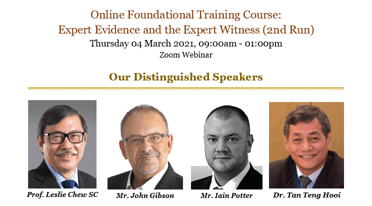 This webinar seeks to provide an introduction to the world of Experts and expert evidence and will examine the role of evidence in disputes resolution, both in the courts and before other tribunals such as arbitral tribunals. Participants will be acquainted with the law relating to opinion evidence (expert testimony), the role of experts in dispute resolution and the relevant Singapore law applicable to expert evidence.