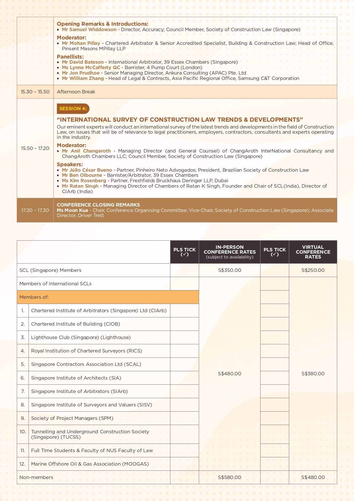 RICS members can obtain and submit CPD hours for attendance of SCL Singapore CPD activities. More details HERE