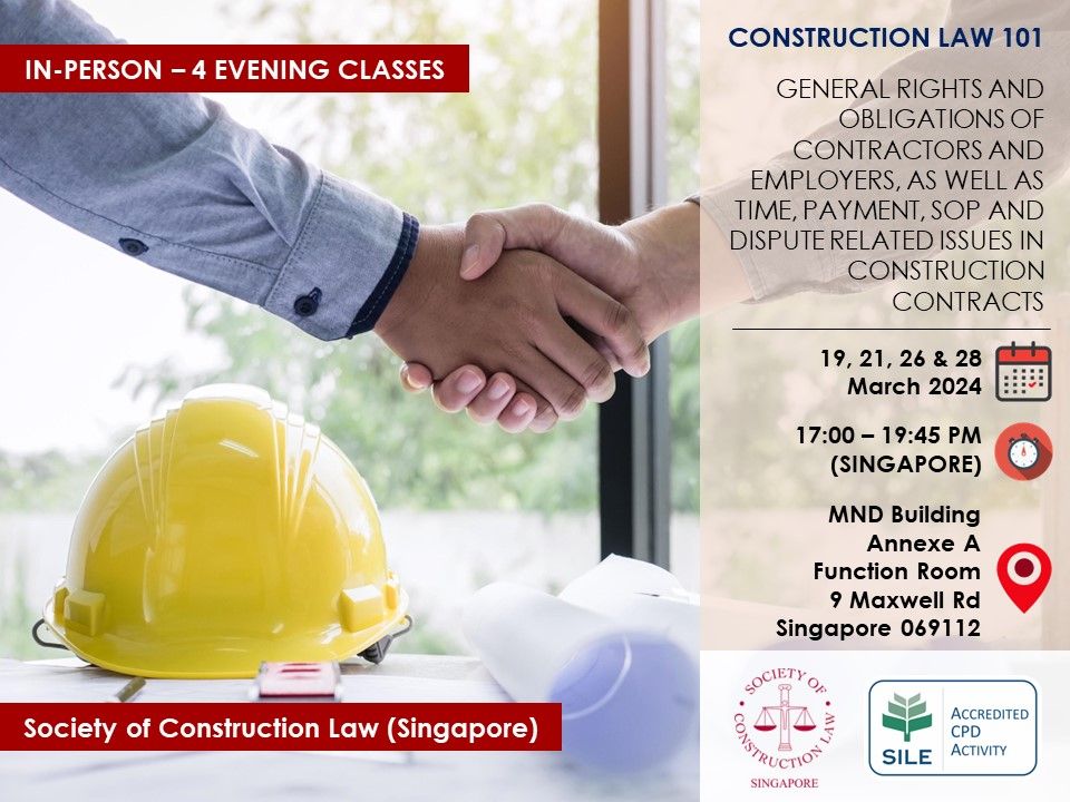 IN PERSON! Construction Law 101 (14th Run): Sessions 1 - 4 (19, 21, 26, 28 March 2024)