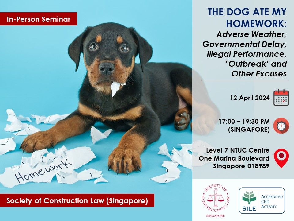CHANGE OF VENUE: The Dog Ate My Homework: Adverse Weather, Governmental Delay, Illegal Performance, "Outbreak" and Other Excuses (12 April 2024, 5pm - 7.30pm (GMT+8))