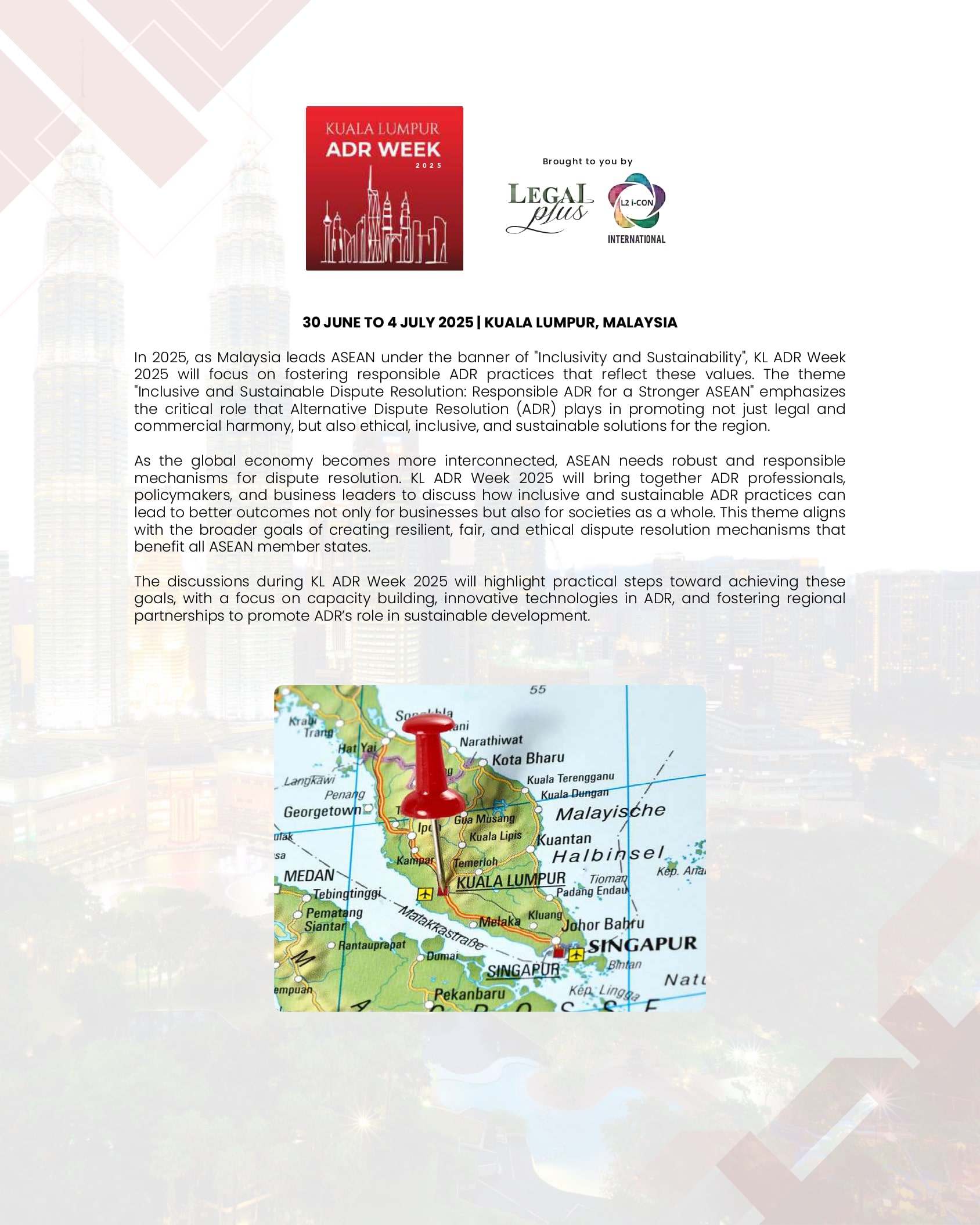 Kuala Lumpur ADR Week 2025 - Inclusive and Sustainable Dispute Resolution: Responsible ADR for a stronger ASEAN (30 June - 4 July 2025, Kuala Lumpur)
